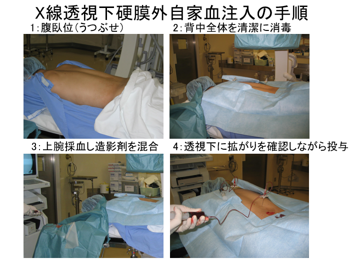 | 図1:X線透視下硬膜外自家血注入(EBP)の手順 |