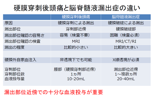 図5:硬膜穿刺後頭痛と脳脊髄液漏出症の比較 |