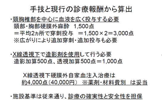 図7:脳脊髄液漏出症へのX線透視下EBP 診療報酬案 |