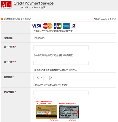 あります」をクリックするとクレジットカード申請画面に移行します。